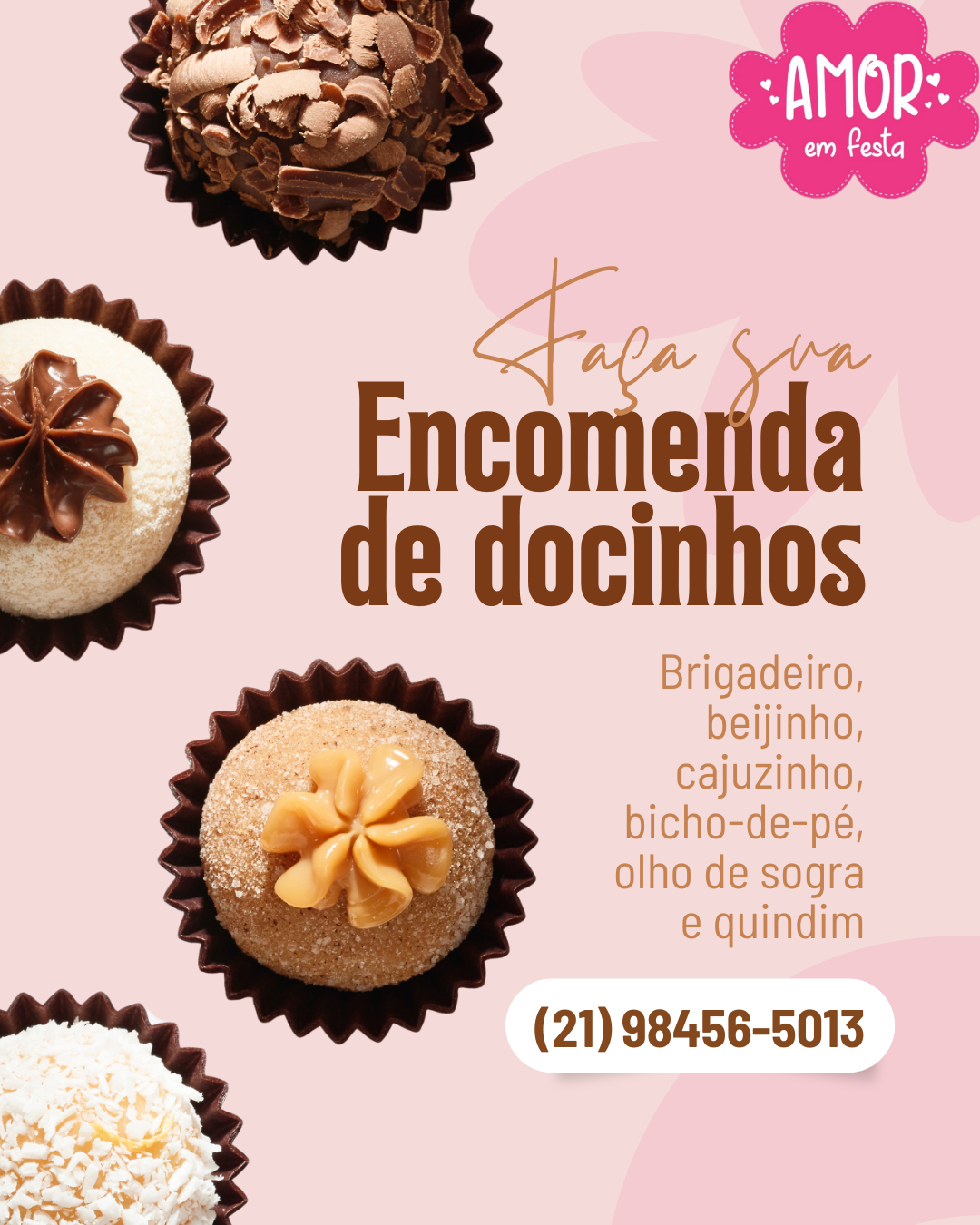 Docinhos feitos com ingredientes selecionados, sabor marcante e apresentação delicada para encantar convidados.